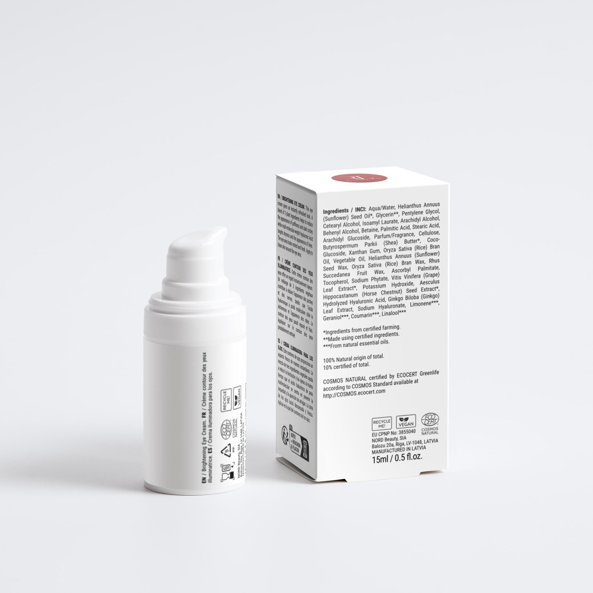Refresh tired eyes with this lightweight hydrating cream. Powered by organic plant extracts like ginkgo, horse chestnut, and shea butter, it helps reduce puffiness and dark circles. Multi-molecular hyaluronic acid delivers deep hydration to smooth fine lines and dryness. The result is a soft, bright, and rested under-eye area. Apply gently to clean skin around the eyes.
